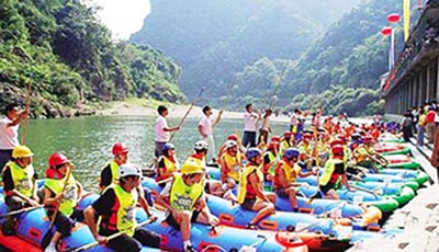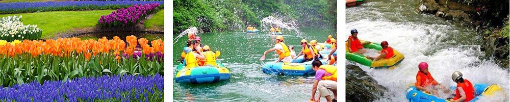 临安最长的漂流天目花海漂流从百园村一路漂到凌口村,横穿三个自然村庄。天目花海漂流建有六个堰坝,途中还设有人造水帘洞和激情水幕等体验内容,不乏游客对漂流所寻求的刺激。河水清凉清澈,水势丰沛,非常适合漂流,尤其是天气比较热的夏天。天目花海漂流其上游是当地著名的英公水库,库容达3600万立方,出水速度可达6立方米每秒。借助英公水库超大的库容,游客基本不会出现因枯水而停漂的现象。漂流需1个多小时,为开展二人自助皮艇漂流的绝佳之地。在秀丽山川中,你会忘却时间的流逝,释放心情,是您休闲度假的理想选择。